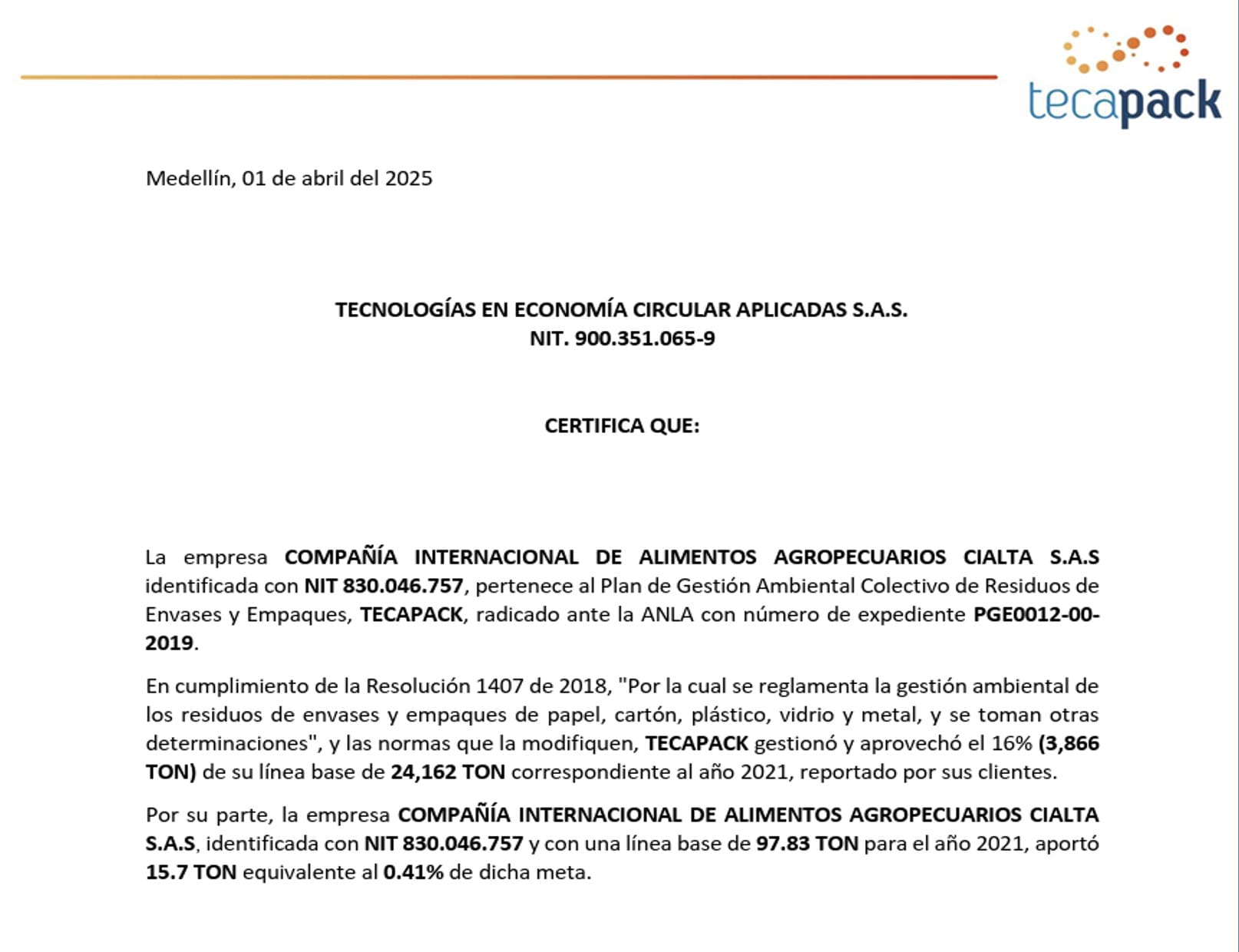 Aprovechamiento Envases - TECAPACK