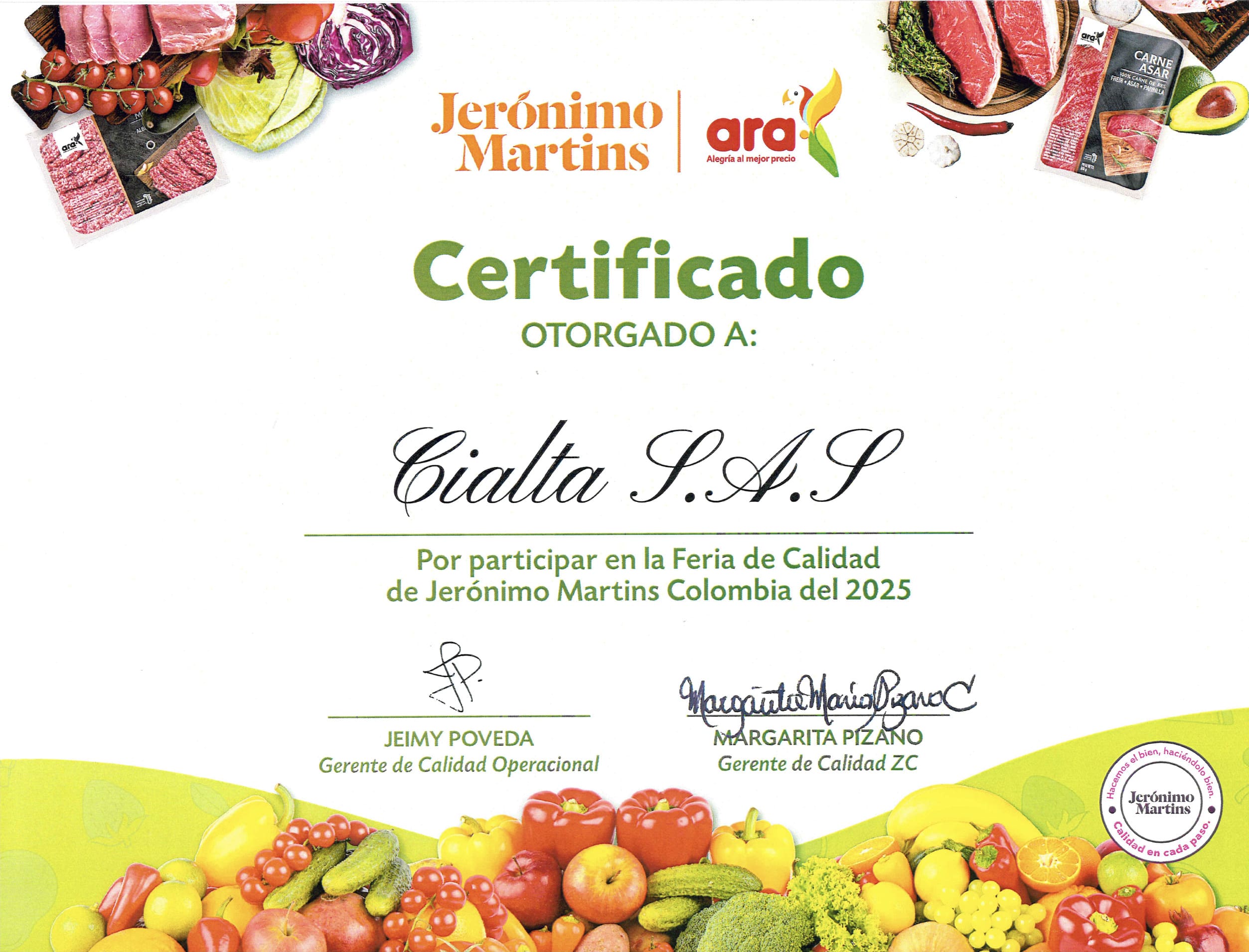 Reconocimiento Calidad - Jerónio Martins | ARA